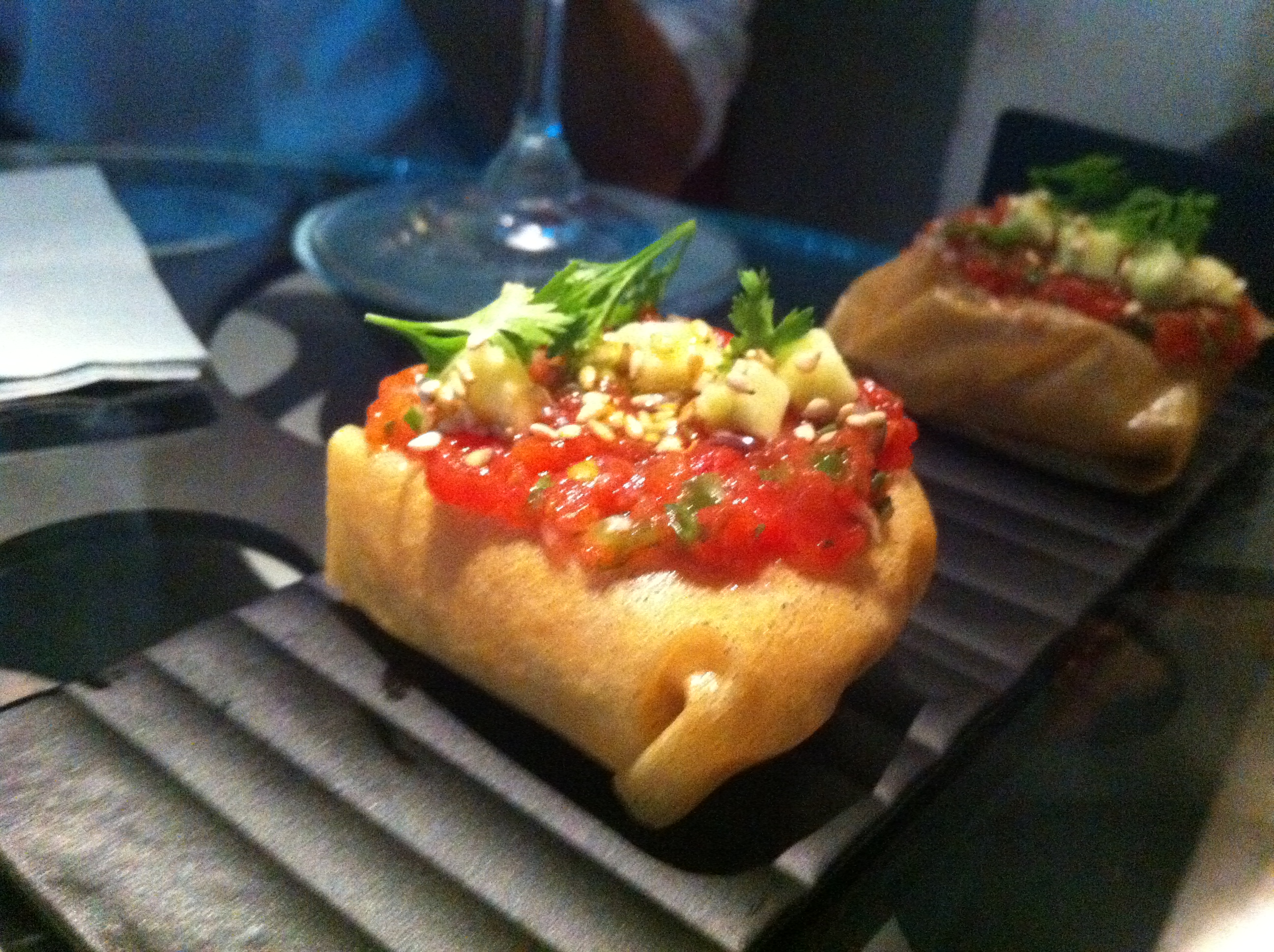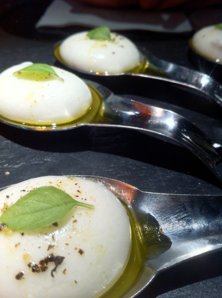 Esferificaciones como las olivas del 41º (que son las del Bulli ni más ni menos) o las minimozarelas con albahaca. Regalos para nuestras papilas.