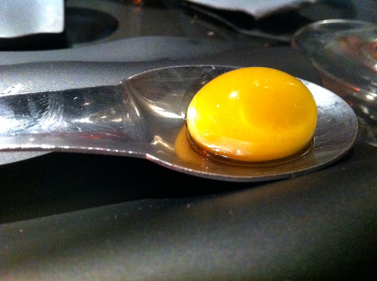 Una ostra con jugo de lichis e iceberg de rábano picante. Tal vez lo más banal de lo que probamos, pero a la altura del lugar.